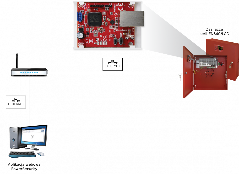 Rozhranie Ethernet INTE-C pre zdroje EN54C-LCD a HPSG3-LCD na integráciu do nadstavbovej aplikácie umožňujúcej diaľkové monitorovanie parametrov, čítanie denníka udalostí, vykonávanie diaľkového testu batérie a príp. aj diagramov prúdov a napätí.