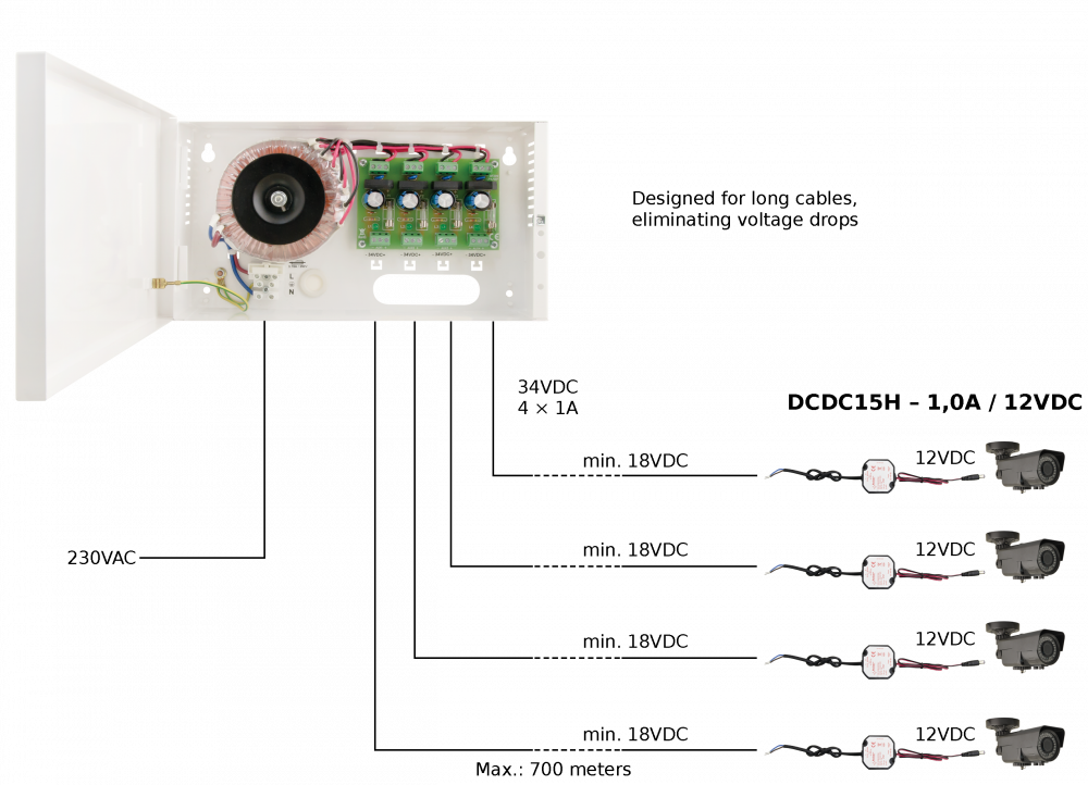 Výstup napájania: 1,5A/12VDC