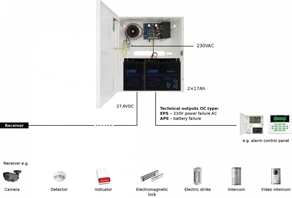 Výstup napájania 3A/27.6VDC – pre všeobecné použitie