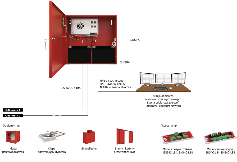 EPS FLT – porucha siete AC, ALARM – všeobecná porucha