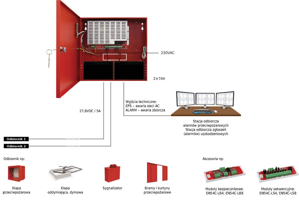 Zhoda s normami: EN 54-4, EN12101-10
