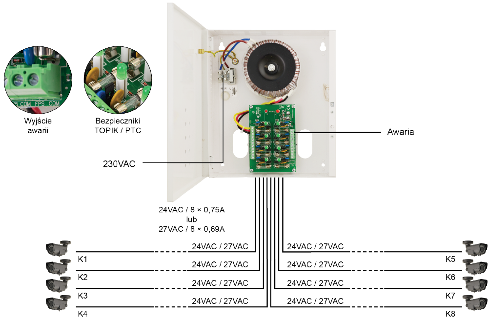 Výstup napájania: 8×0.75A/24VAC alebo 27VAC