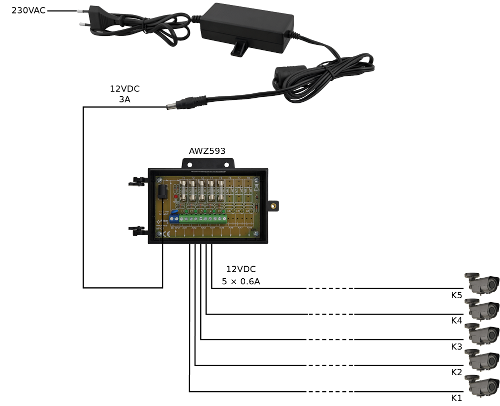 – Výstup napájania: 3A/12VDC