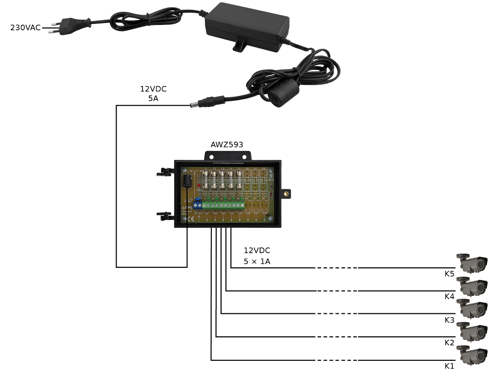– Poznámky: vodič s konektorom 5,5/2,1 a sieťový vodič 230V napevno