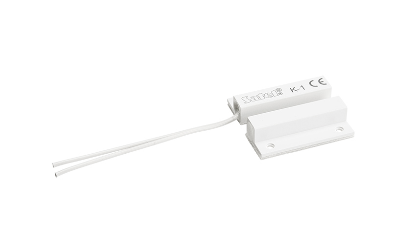 Magnetický kontakt, Farba biela, Povrchová montáž, Nepolarizovaný, Stupeň zabezpečenia 1, Plastové prevedenie, Pracovná medzera ≤28mm, Tamper nie, 1x NC kontakt, Vstavané EOL rezistory nie, Ukončenie káblom dĺžky 0.35m, Určený na inštaláciu do neferomagnetického/dreveného/plastového materiálu, Rozmery 33.5x14x8.2mm