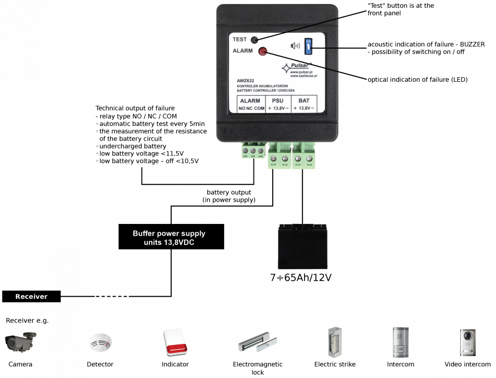 Výstup: PSU – terminals for connecting uninterruptible power supply unit (BAT output of power supply)